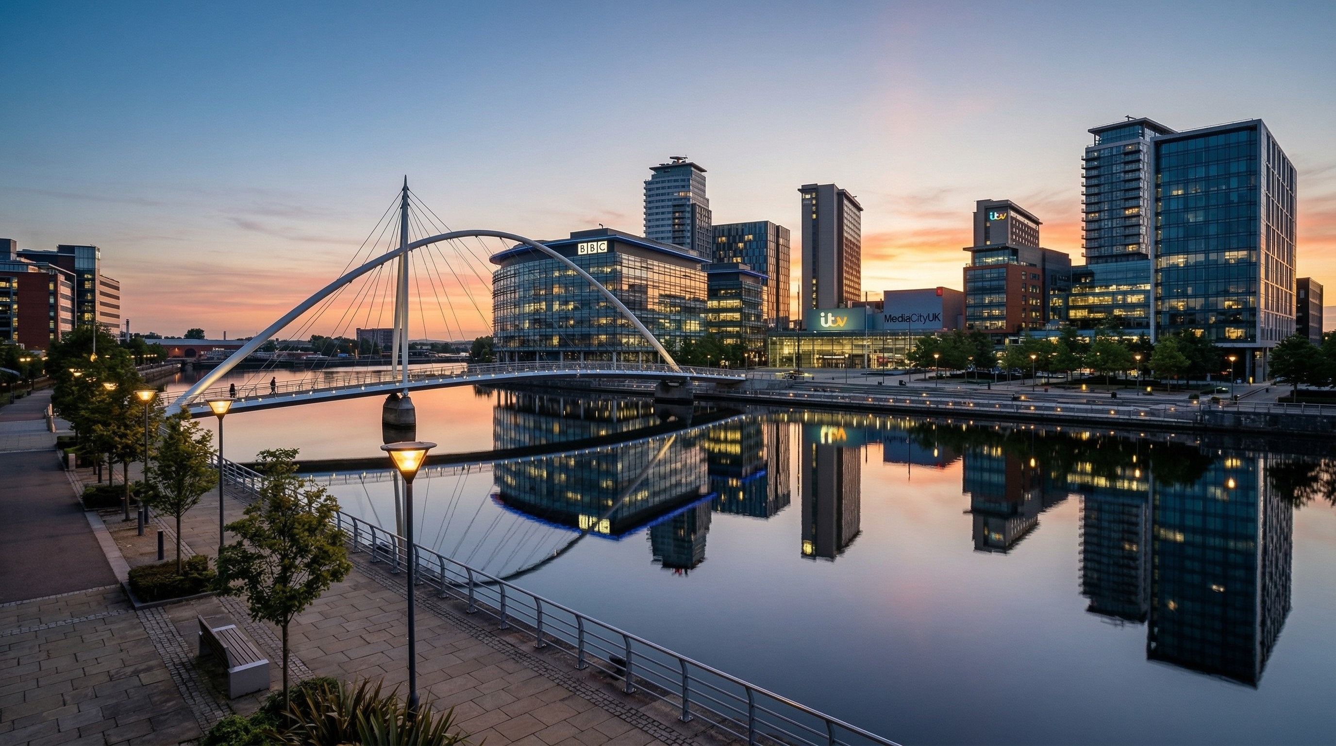 MediaCityUK is one of the most significant media and digital campuses in Europe. Located in Salford, just across the River Irwell from Manchester city centre, it is home to the BBC, ITV, dock10 Studios, and a growing ecosystem of media, technology, and creative businesses.